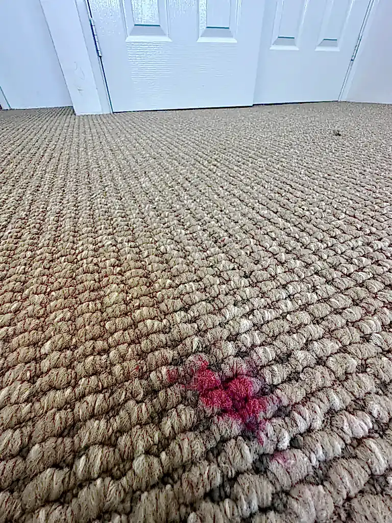 - Spot treatment: In the carpet cleaning process, the pre-spot step specifically targets stubborn or resistant stains. By applying a specialized pre-spot solution, we effectively soften the stains, making them easier to remove during the subsequent hot water extraction. Our carpet cleaners use various spot removers tailored to different stain types, as not all stains require the same treatment. Whether it’s coffee, wine, food stains, pet accidents, fluid spills, oil, tea, mud, or other absorbed and dried-in stains, we have the expertise to tackle them all.